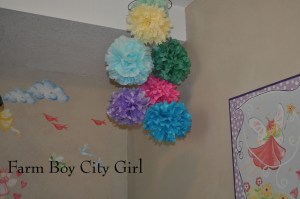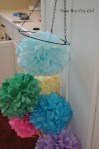 I love decorating with tissue poms – they are so easy to make and provide such a dramatic statement. I did red white and blue poms last year for the 4th of July and I loved it. I also love to use them on presents instead of bows.The tutorials are all over the place on how to make them so I won’t go through all the steps. Here is a link to that shows you how to if you haven’t done this before. http://allthingsmamma.com/2012/01/how-to-make-tissue-paper-pom-poms/