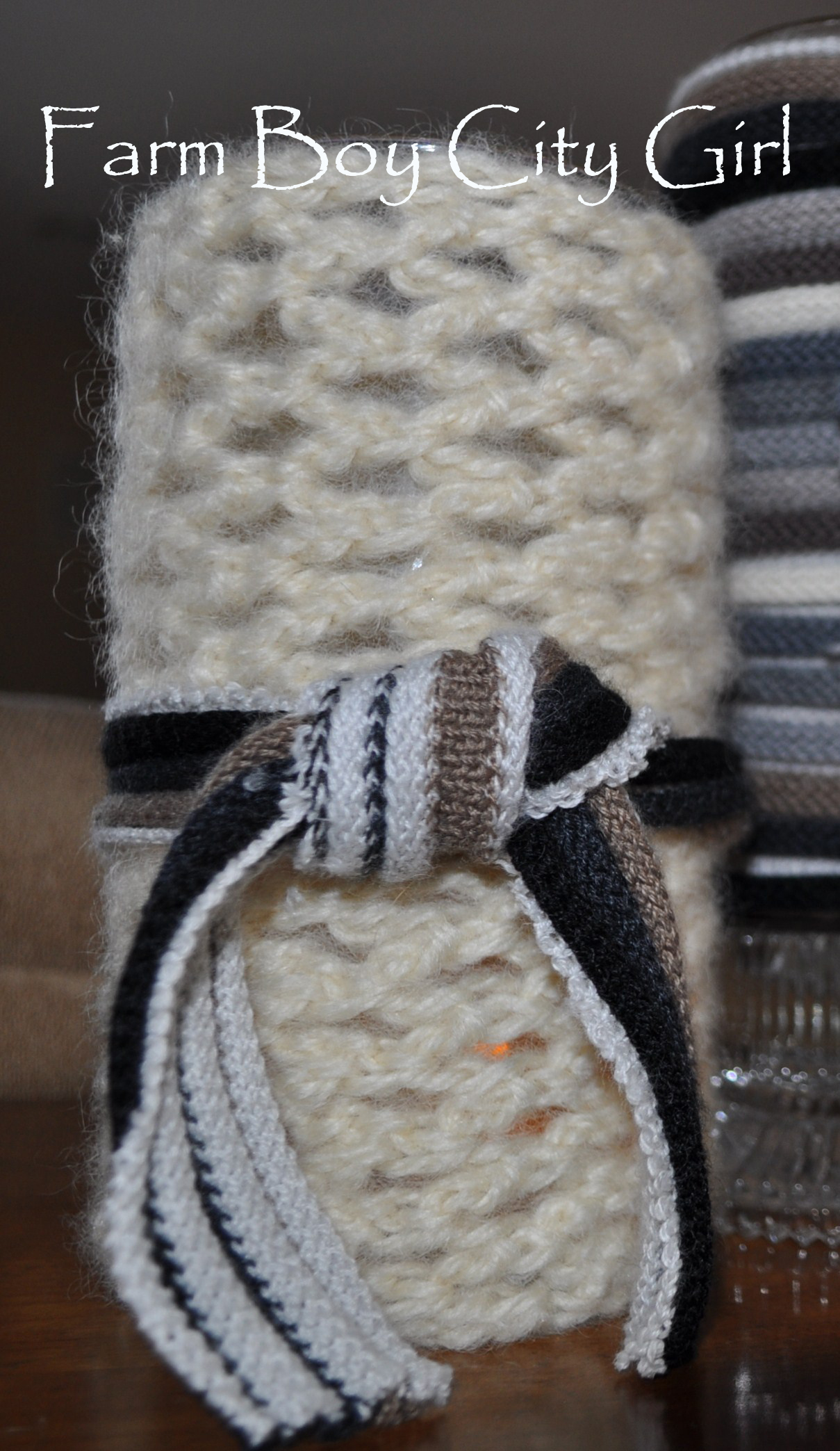 I did two layers on this one and then cut a little bit off the other scarf to tie around the middle – like a mini scarf for the candle!