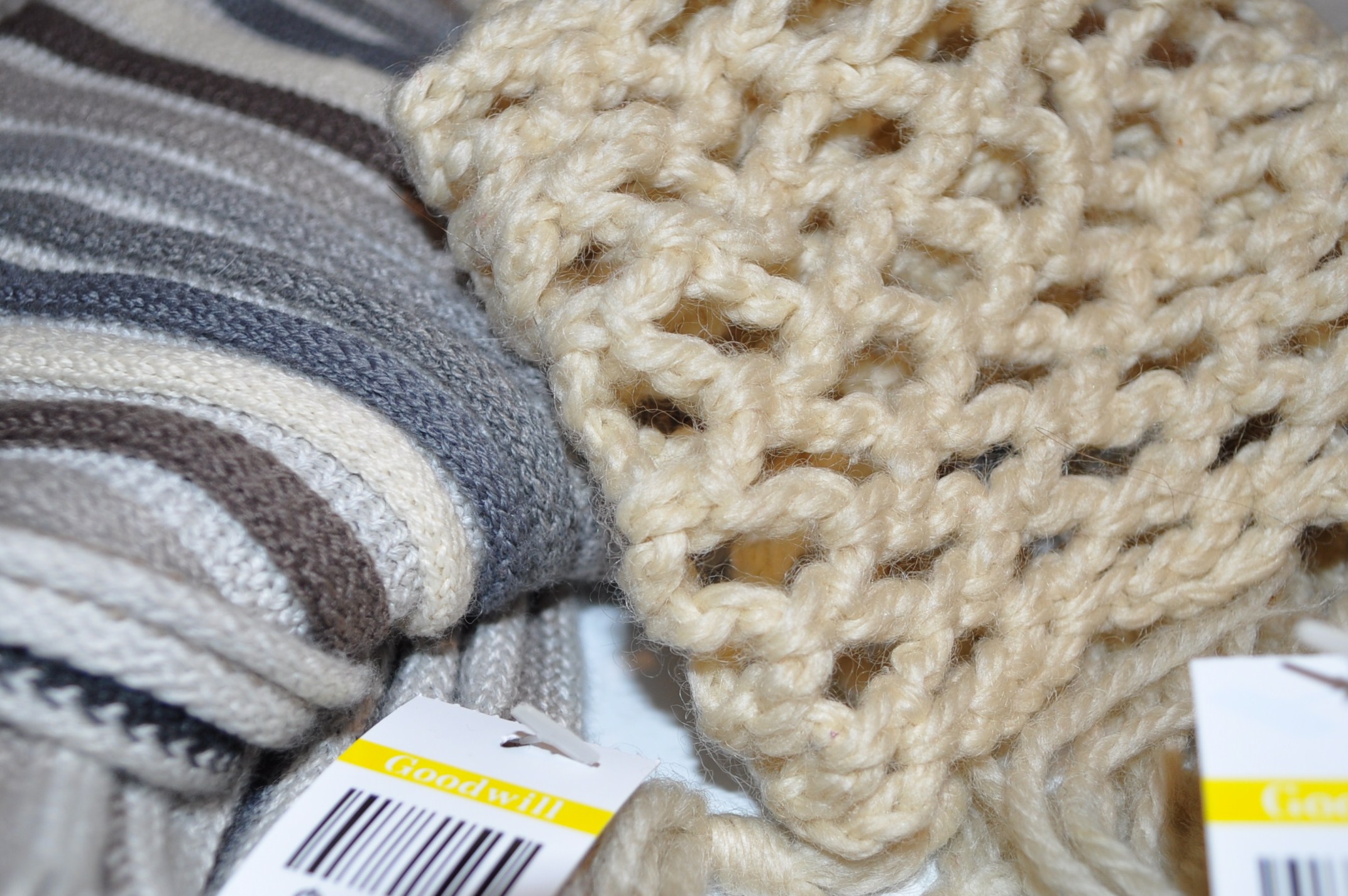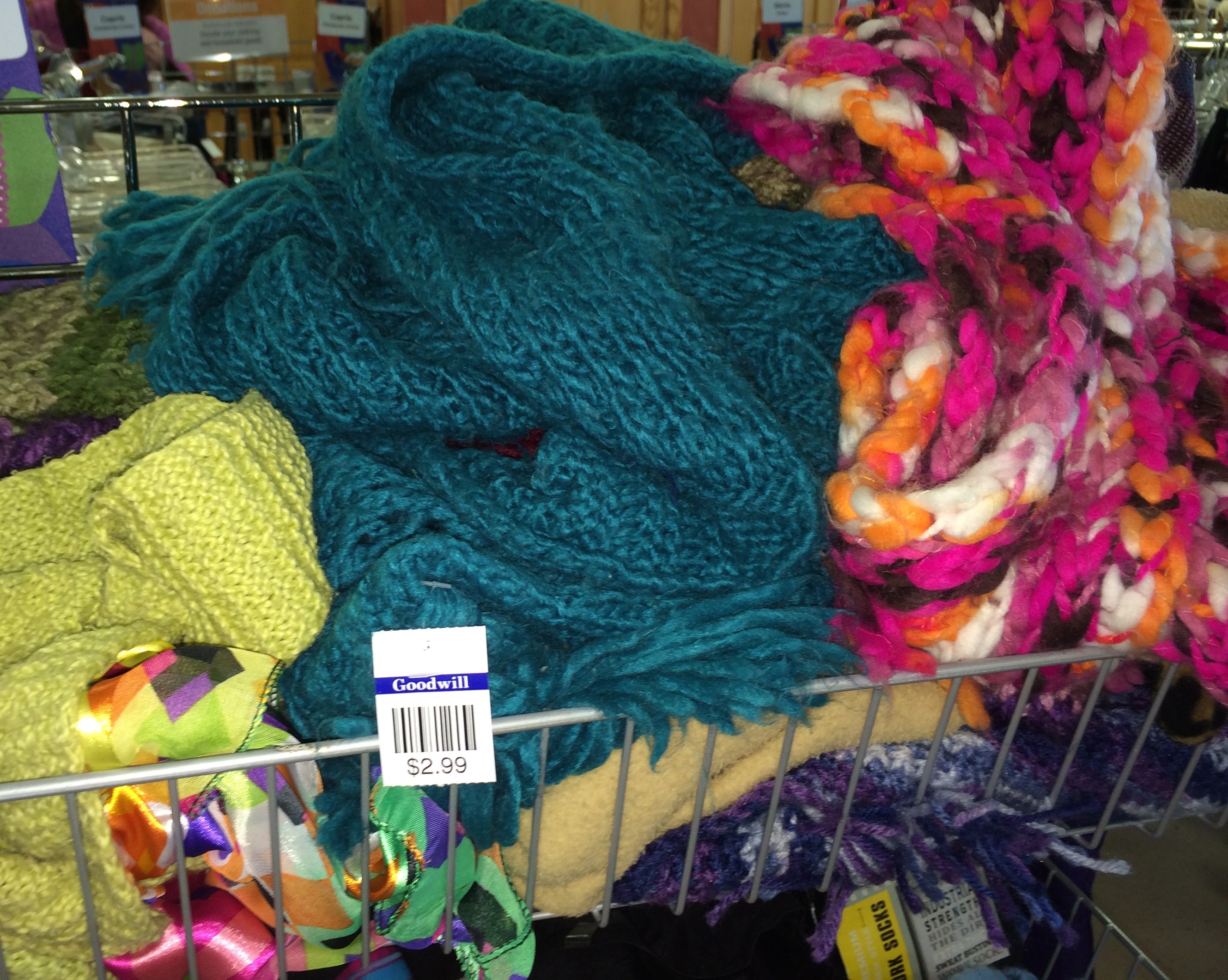 I have seen this done with sweater sleeves but on my last trip to Goodwill, I was drawn to the scarves. The colors and textures are gorgeous and the options are endless. The $2.99 price doesn’t hurt either!