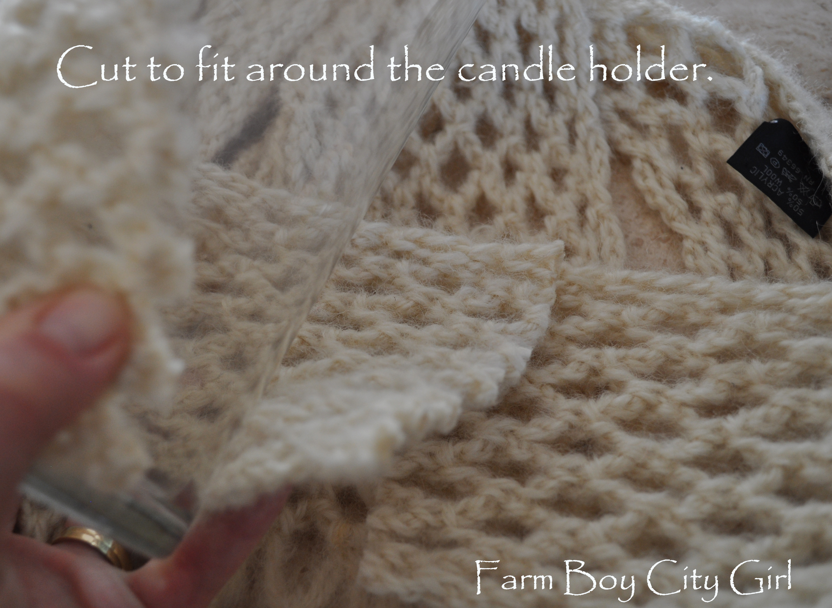 1) Wash the scarves and then cut them to fit perfectly around the candle holder.